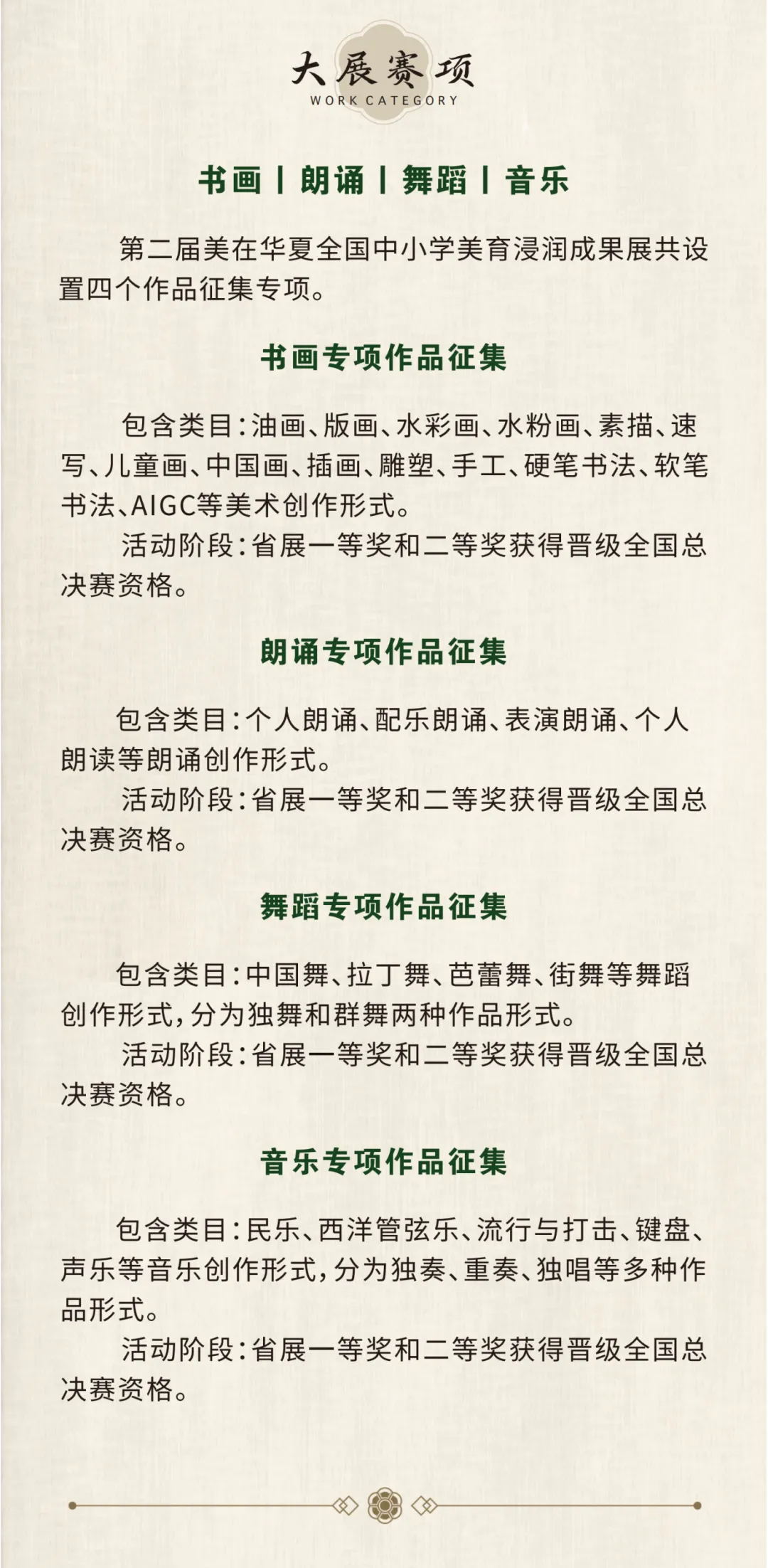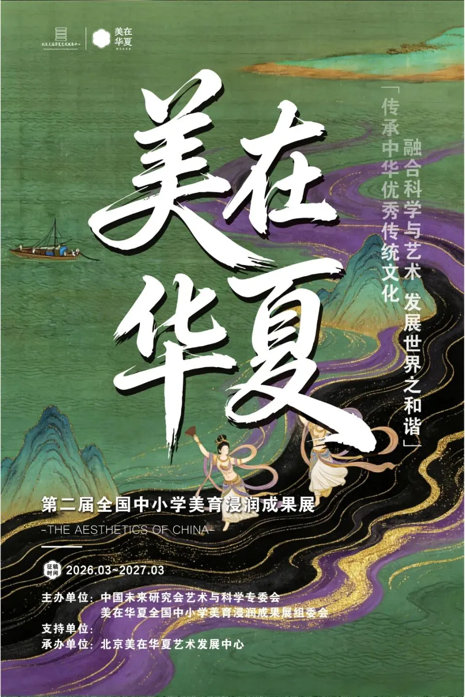 进一步探索艺术与科学的融合之道,推动青少年跨学科知识学习与实践,服务青少年美育工作,促进青少年的全面发展,培育面向新时代的复合型人才,及践行教育部《关于全面实施学校美育浸润行动的通知》的文件精神,美在华夏全国中小学美育浸润成果展组委会携手中国未来研究会艺术与科学专业委员会携手,于2026年3月至2027年3月,面向全国中小学生,开展“美在华夏”全国中小学美育浸润成果展系列活动(活动内容有展演、研学、测评、人才库等),培养青少年人文艺术情怀和科学探究精神。