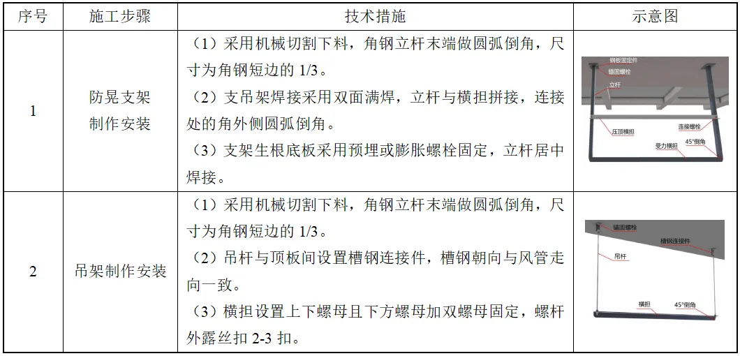 表18.3-1 支吊架安装技术措施