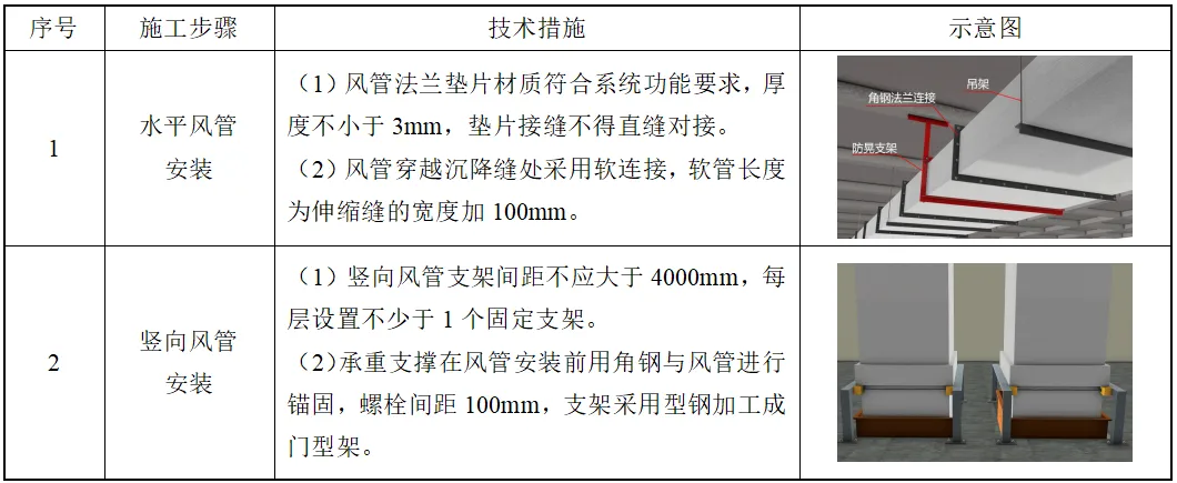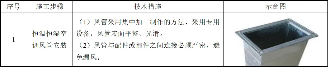 表18.3-1 风管系统制作与安装技术措施