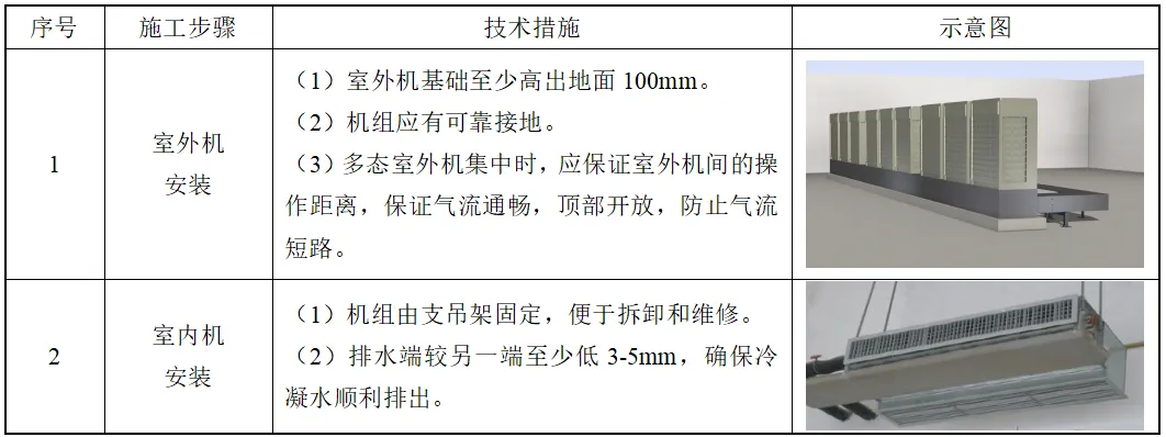 表18.3-3 VRF空调机安装技术措施