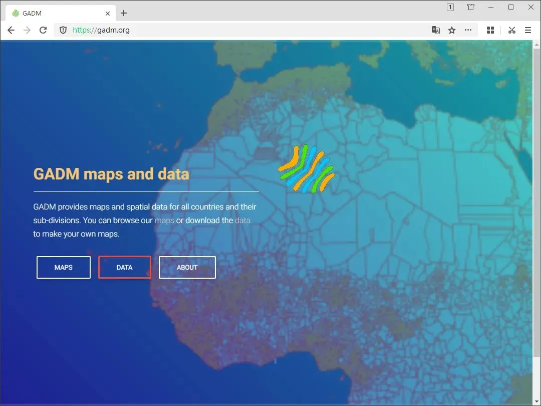 现在我们分享如何下载伊朗行政区划的方法,请先从以下网址打开网站,然后单击“DATA”按钮,如下图所示。