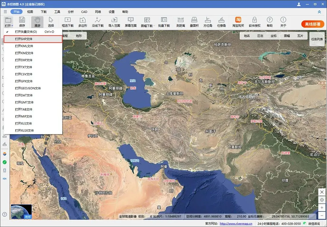 在微图4中查看Shapefile文件比较简单,你可以在“打开”菜单中选择“打开SHP文件”后打开文件,也可以直接拖放到软件中打开。