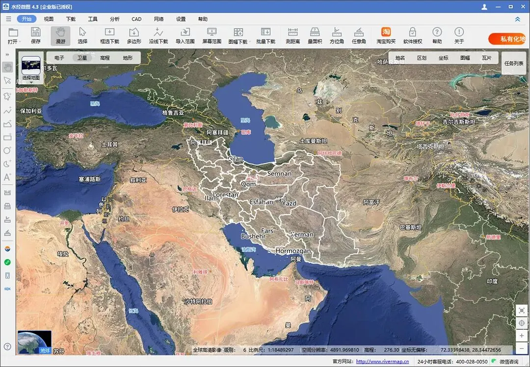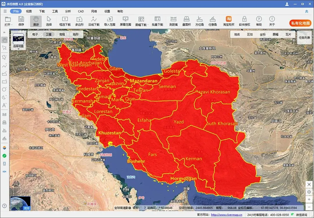 如果你需要下载包含伊朗行政区划的卫星影像,直接通过“框选下载”工具下载整个区域即可。