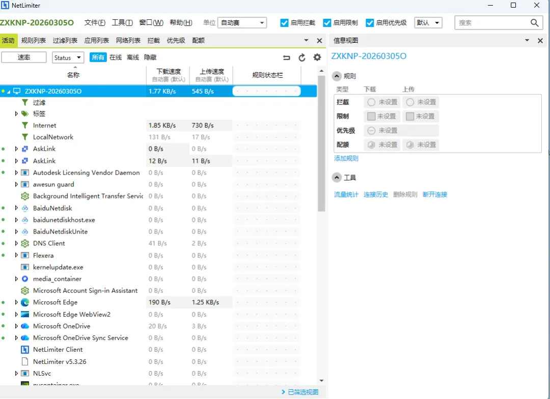 它是专为Windows设计的终极互联网流量控制和监控工具。 您可以使用NetLimiter为应用程序甚至单个连接设置下载/上传传输速率限制,并监控其互联网流量。
