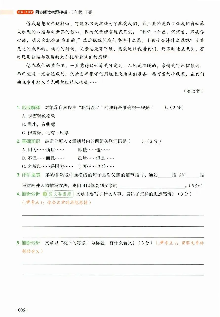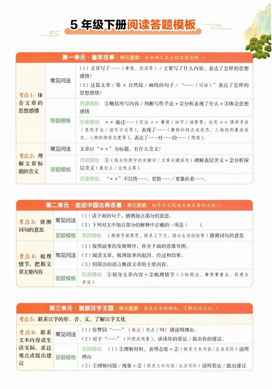 今天分享的是26春语文《开心语文阅读理解答题模板》123456年级下册建议分享到班级群/年级群,帮助孩子学习!