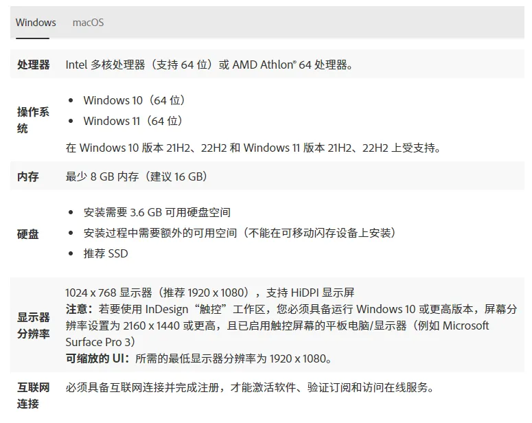 InDesign 2024配置要求