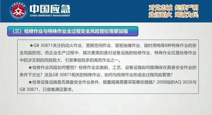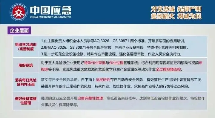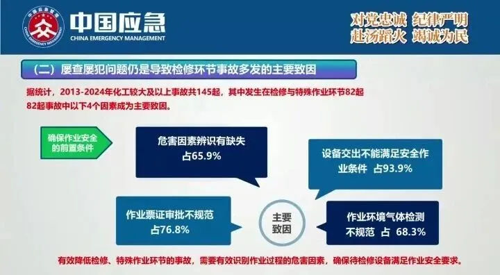 文件强调执行落地,要求企业完善制度、用好作业管理系统、落实风险研判;监管部门强化抽查执法,对违章作业依法追责,筑牢检修作业安全防线。