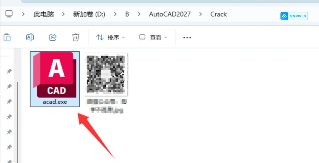 8、回到解压安装包复制Crack文件夹下acad.exe文件。