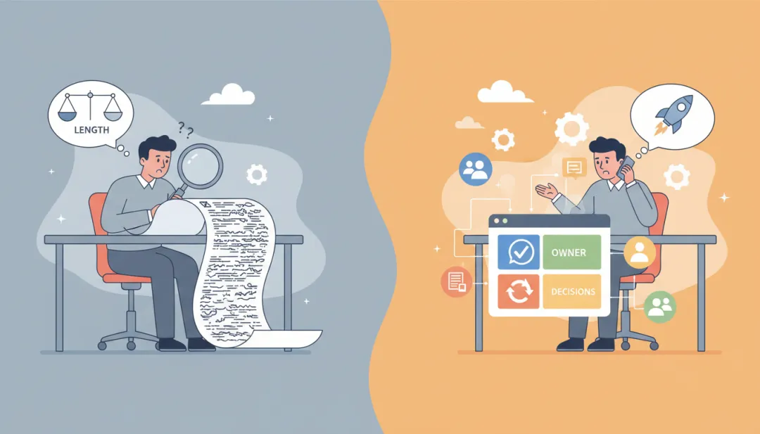 "待办拆到人和时间节点"——至少同时出现具体动作、责任人和截止时间,只有模糊动词不算 "决策单独标注"——结论要和讨论过程分开,不能混在长段描述里 "责任人识别"——待办要能对应到具体的人,不是笼统的"团队" "能直接推进工作"——纪要发出去之后,不需要二次整理就能用