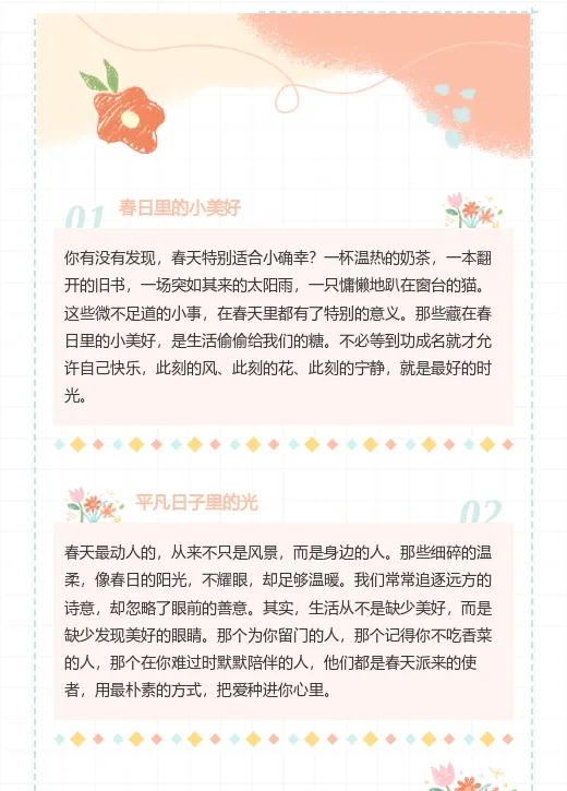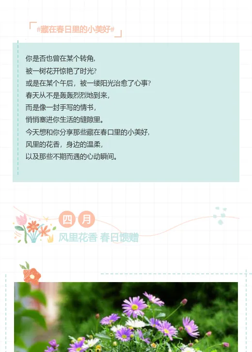藏在春日里的小美好公众号图文模板ID:12278,来源于小墨鹰编辑器