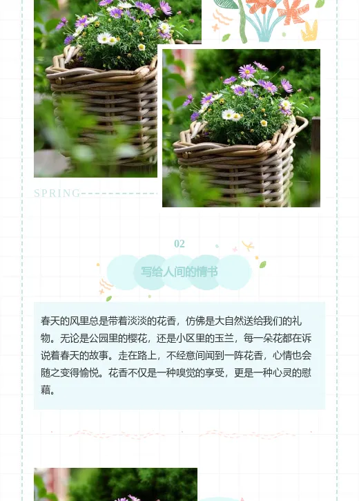 浏览模板时注意选择带有花朵、嫩芽等春天元素的微图文模板