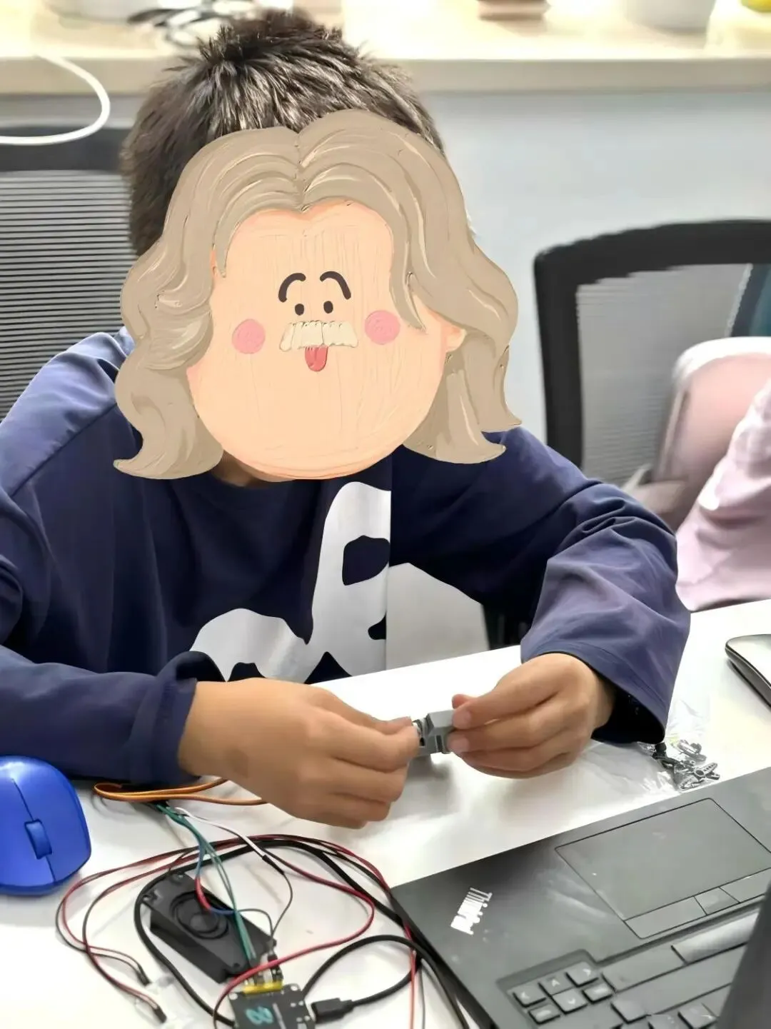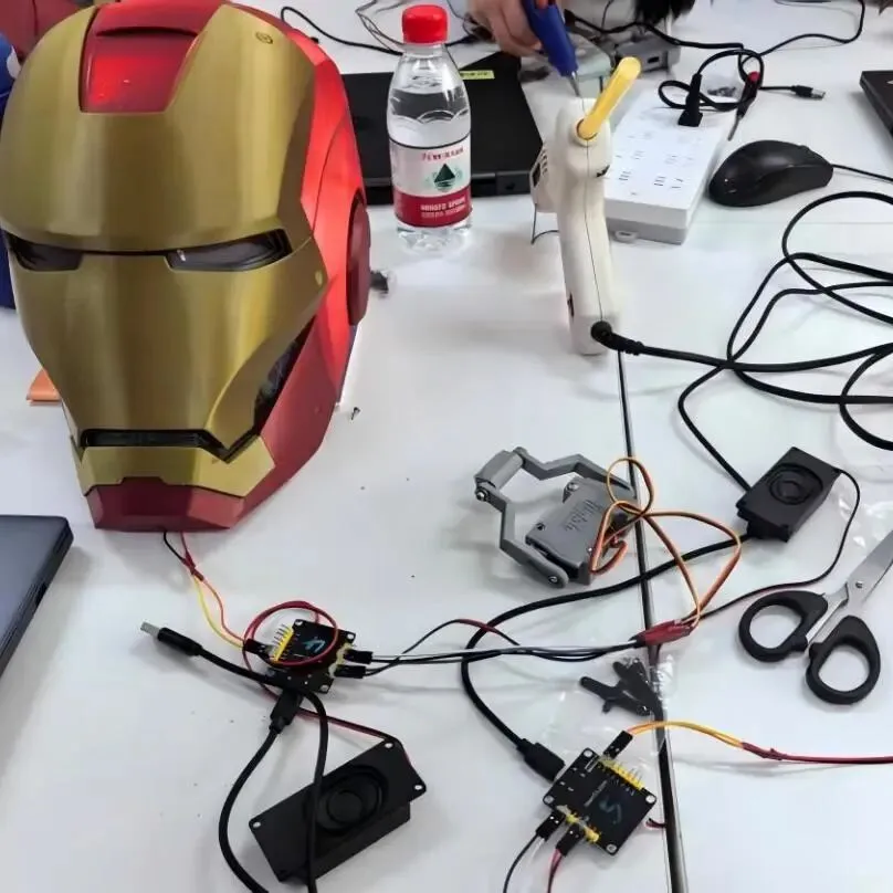 •学生亲手设计、组装钢铁侠头盔,运用所学知识进行编程调试,实现各项功能。