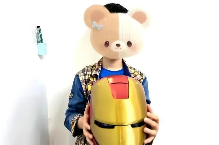 学生展示自己的钢铁侠头盔