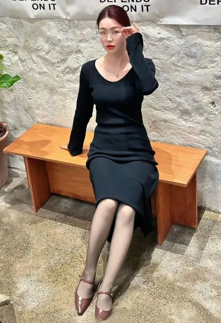 修身款的针织裙最好地表现出了身材的曲线。不能简单地说穿紧身裙的人就是胖子,关键是选对了版型。这条裙子腰部稍微收一点,既显出腰线又不勒得小肚子疼。袖口、裙摆部分的卷边更加细节一些,不会太单一。平时穿福鞋脚感佳貌不群,约会穿上增高鞋瞬间成魅惑小魔鬼。