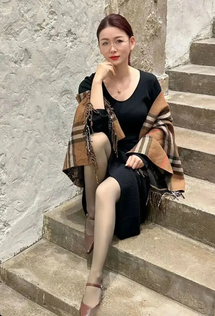 觉得全身黑太单调?加条披肩就和原来大相径庭了。棕色的格纹披肩配上黑色的裙子,复古又不会太繁杂。披肩不用束紧,随随便便地系在肩膀上让一半往下垂,走起来颇有派头。个子矮的女生要注意裙子长度不能太长,露出一点腿会让身高感觉更高。