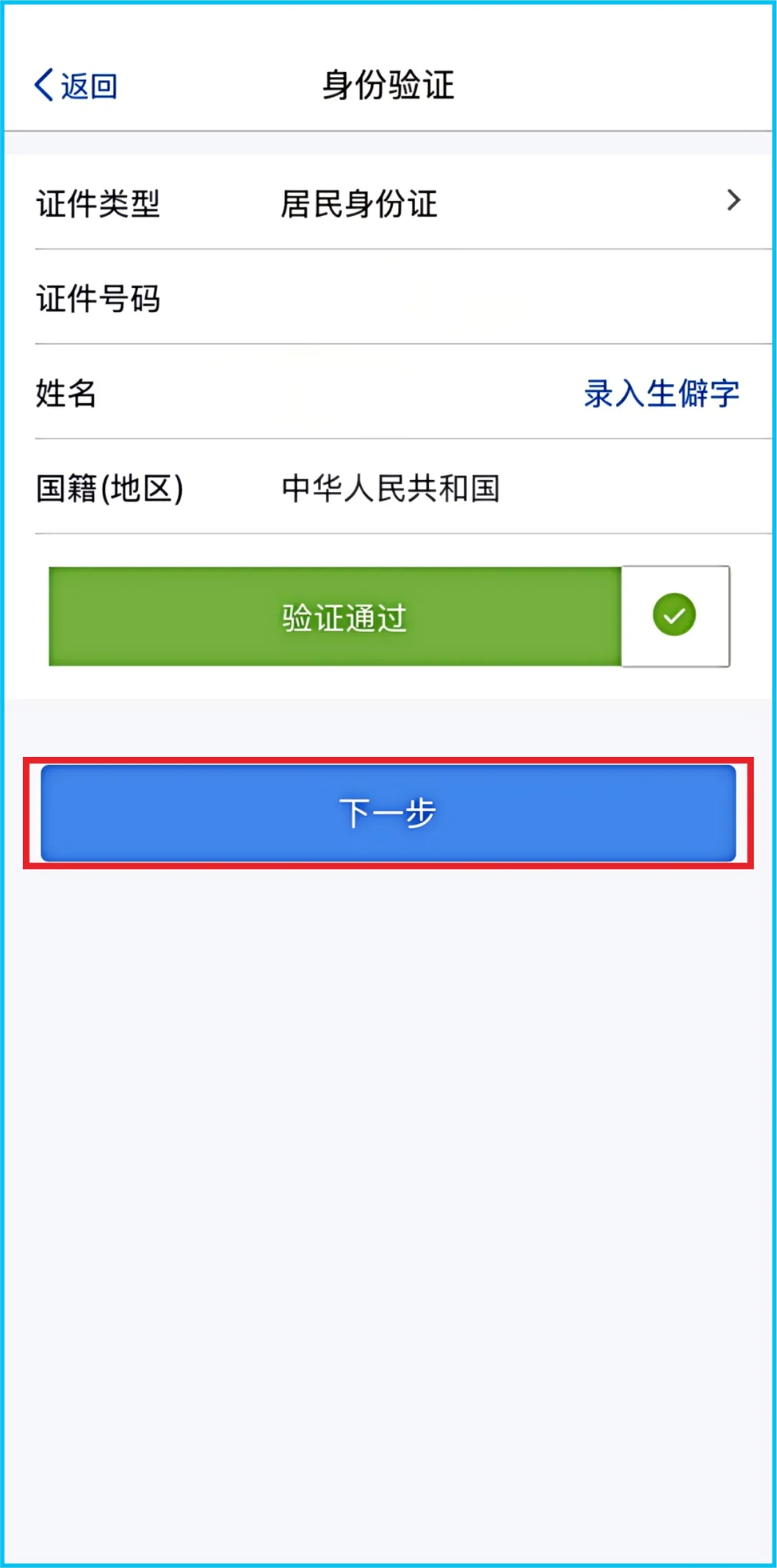进行身份验证,点击【下一步】