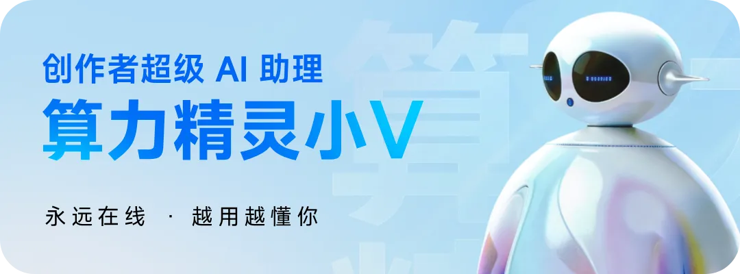 创作者超级AI助理「算力精灵小V」,正是为此而生。它不只是冰冷的工具,更是一个鲜活的创作精灵,陪伴你每一个灵感闪现的瞬间,从选题、生成到作品整理,全程为你保驾护航,让每一份创意与灵感都轻松成为专属于你的数字作品。