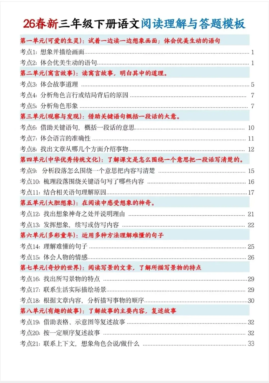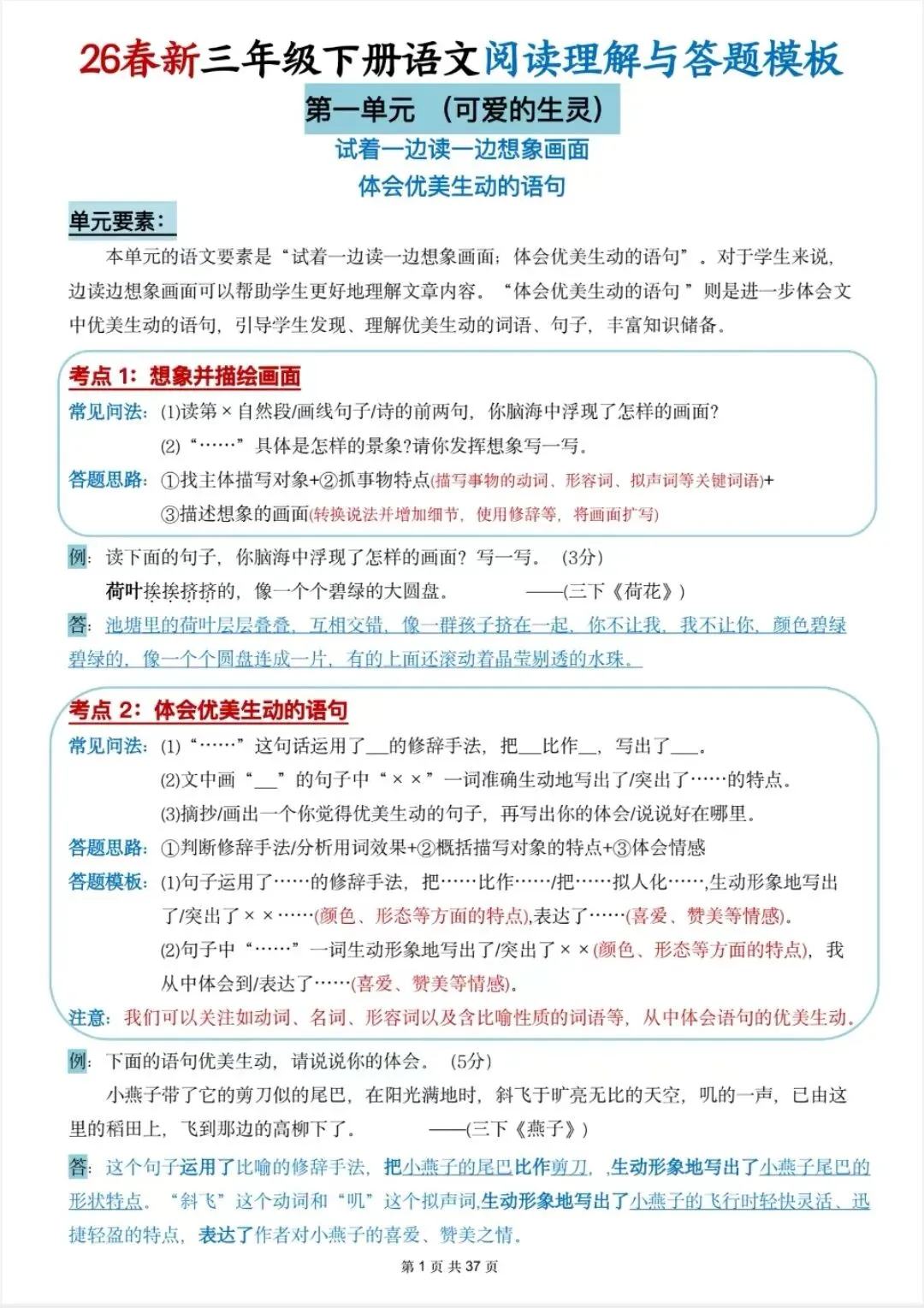 26春新三年级下册语文阅读理解与答题模板,覆盖常考题型,思路清晰好套用,答题规范不丢分,帮孩子快速掌握阅读技巧,稳步提升成绩以下为部分截图,具体看完整PDF文件(温馨提示:文末有电子版领取方式)领取完整电子版:①:点点右下角的“赞”和“在看”②:关注公众号点击资料领取按钮