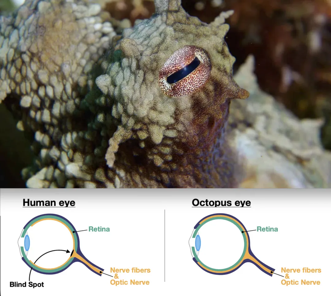 章鱼和人类眼球结构对比|图片来源:OctoNation
