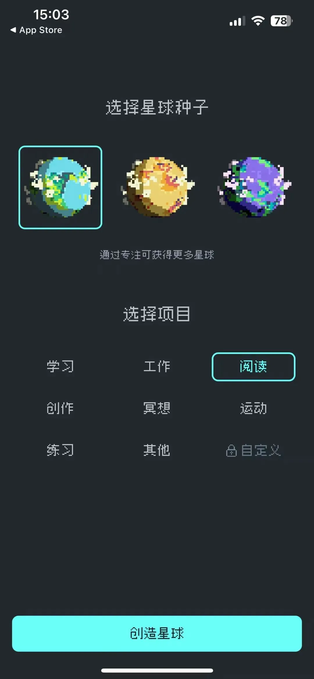 这款也是跟番茄钟差不多的专注类 APP,同类软件虽然很多,但我还是推荐一下。主要是里面的星球设计很合我口味,能满足常见的养成爱好。用法很简单,设好目标开始计时,专注时间够了,星球就会进化升级,最后能养成很漂亮的星球。