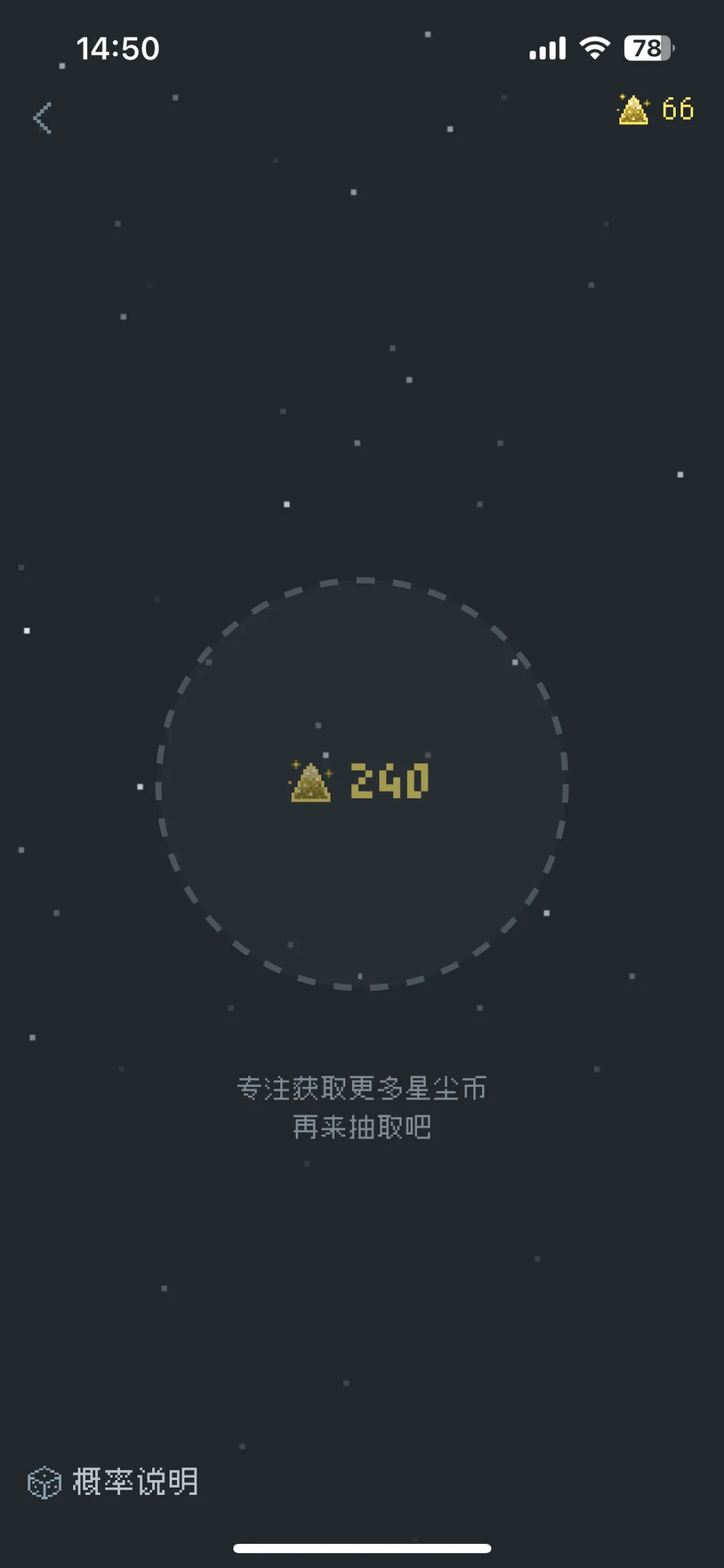 不花钱也行,专注时会掉星尘币,可以用来抽星球皮肤,总共有 68 种可以抽。