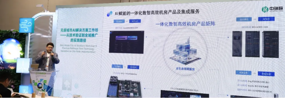 中瑞恒作为重点受邀企业,在现场发表了题为《AI赋能高效机房-中瑞恒一体化数智节能降碳新路径》的主旨演讲。