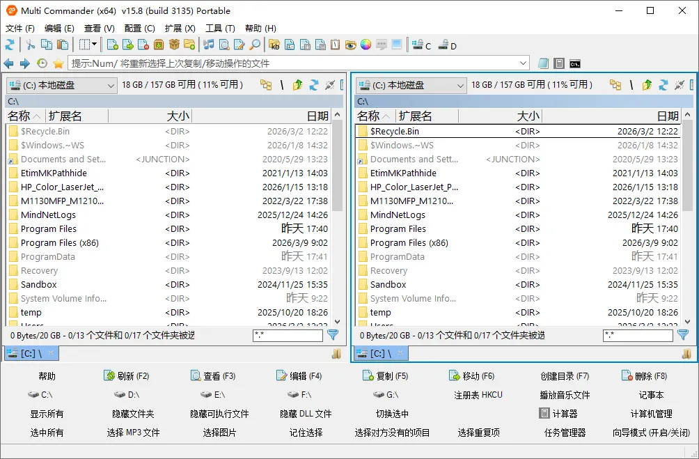 支持双面板+多标签界面,可以同时打开多个文件夹进行操作