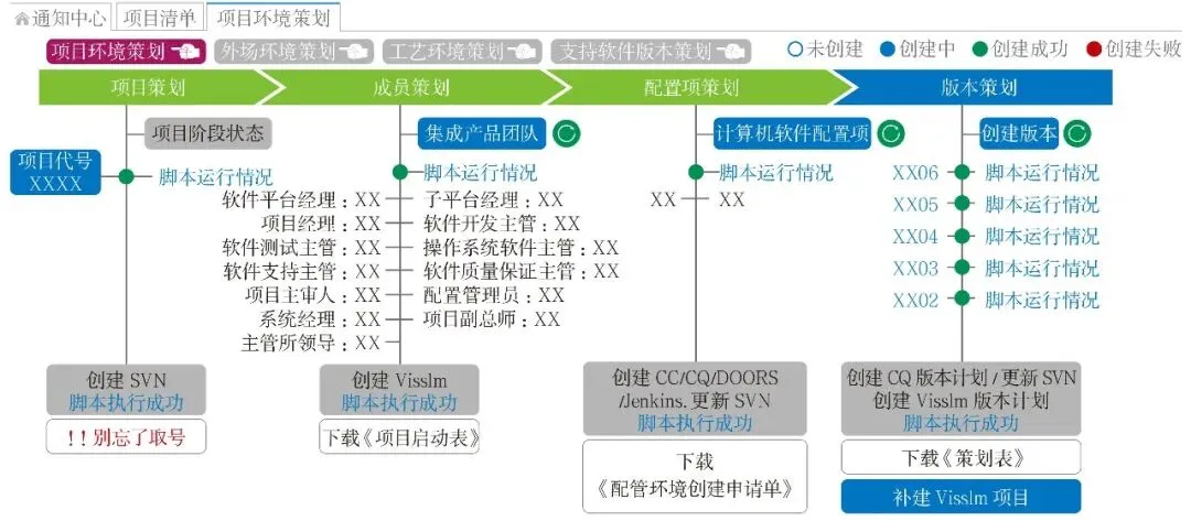 在项目启动阶段,平台基于配置项、编译器版本、工具版本、参数等项目信息自动生成需求空间、代码仓库、计划与配置管理空间,形成可复用的环境基线,减少环境差异导致的返工与质量波动。