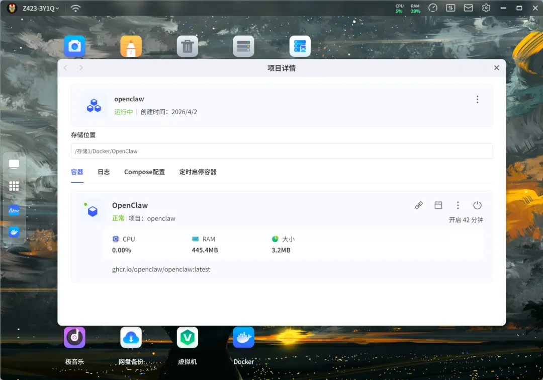 于是,这个想法我就在极空间Z423旗舰版上动手实践了起来。看看作为极空间上代旗舰NAS的它,到底能不能扛起一个让给小龙虾提供最基本“养料”的本地大模型。