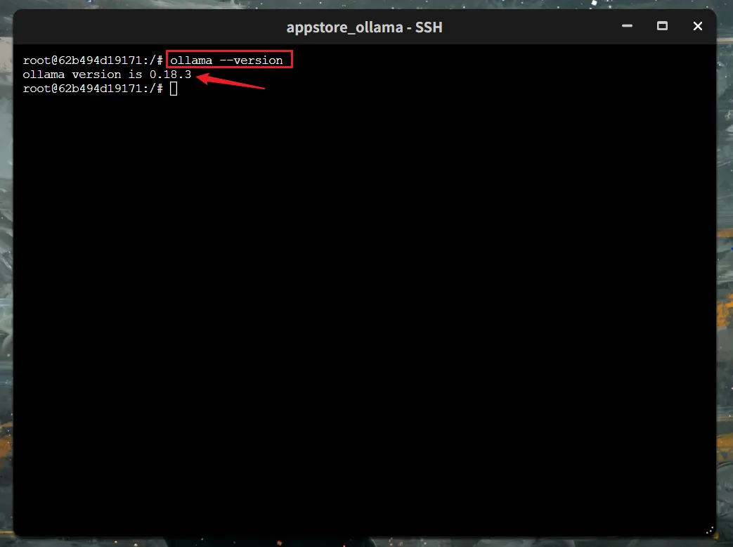🔺在终端我们可以通过指令“ollama --version”来查看Ollama 版本,可以看到它和应用商店里显示一直,均为最新v0.18.3版本。