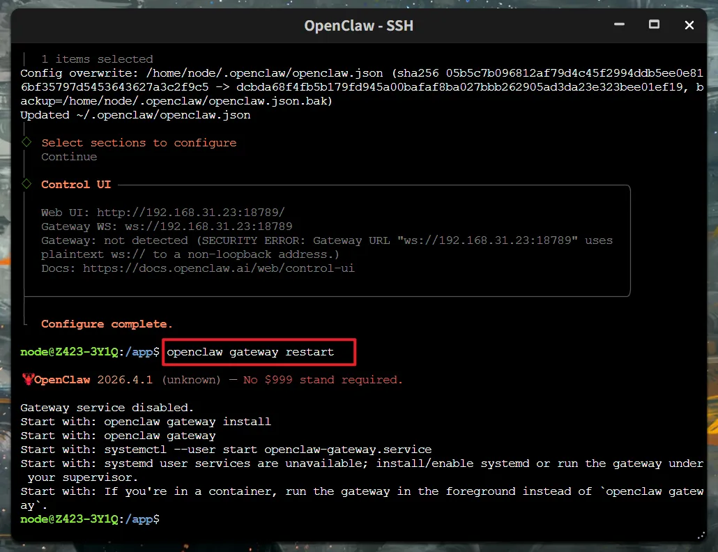 🔺最后输入指令“openclaw gateway restart”就可以了!