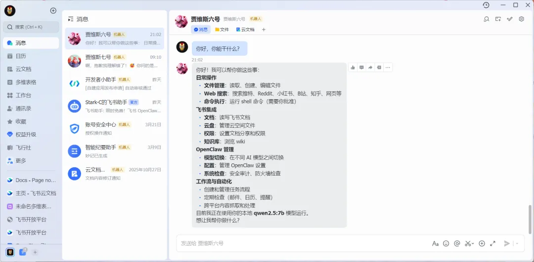 🔺当然,飞书这边也是没有问题的,等待的时间同样很长,但不管怎么说,确实是跑通了!