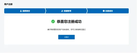 提交基础信息后,页面会提示相关操作,此时一定要牢记自己设置的账号和密码,随后点击去登记,进入中国版权登记业务平台的核心页面。