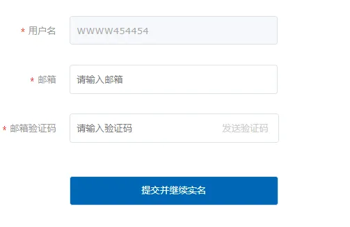 实名认证的第一步是邮箱验证,页面会显示已注册的用户名,接下来需要: