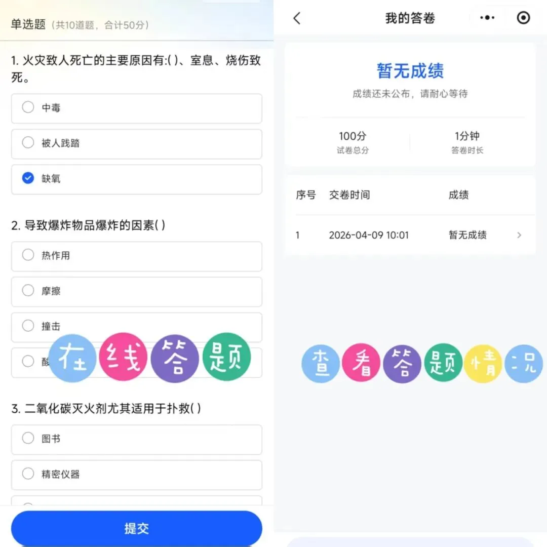 安全培训不能只是走过场。企鲸支持快速创建在线考试,具备题目乱序、选项乱序、切屏强制交卷等防作弊功能。系统会自动批改,生成每个人的培训档案。谁参加了考试、谁没通过、谁得了多少分,总部后台都能实时查看,真正做到 “培训有记录,执行有依据”。