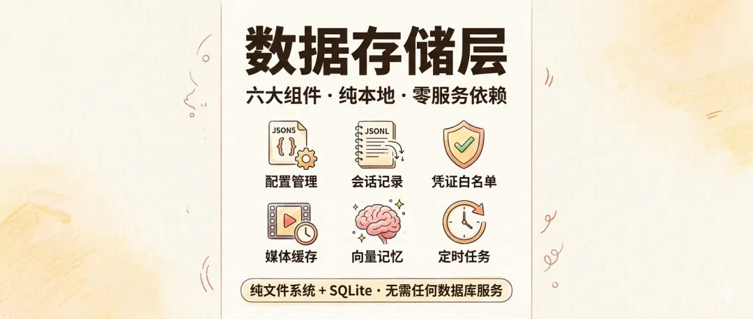 | 原子写入 | 先写临时文件,再 rename() 原子替换(配置、Cron Store) |