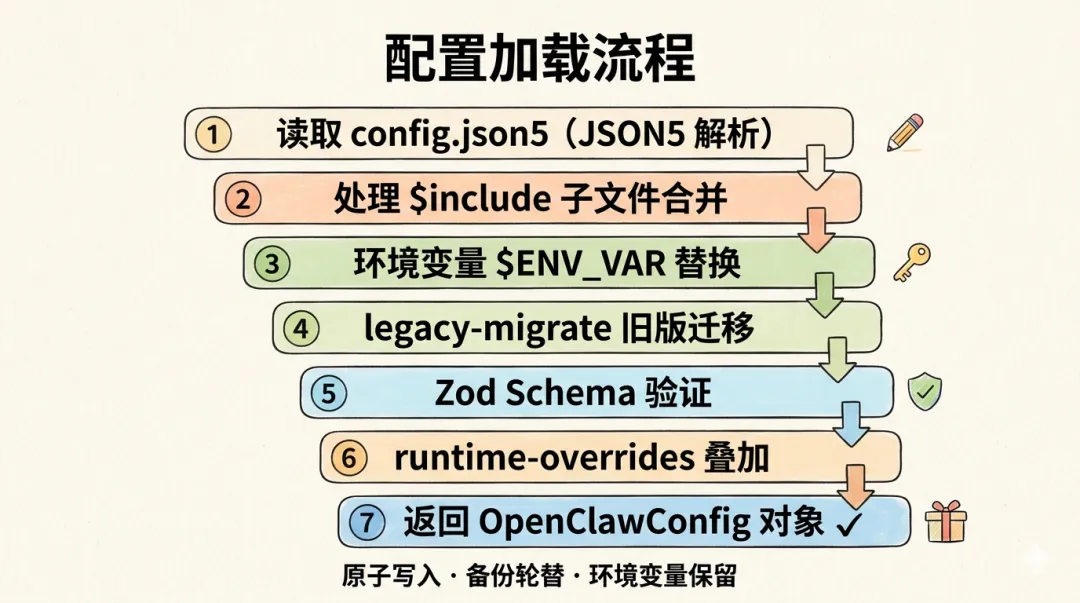| Zod | 运行时配置验证(OpenClawSchema,各子模块 schema 聚合) |