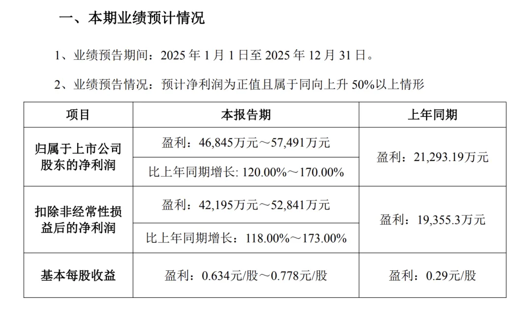 ▌亚太股份:2025年净利同比预增超120%