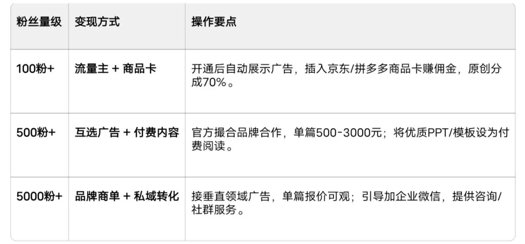 💰 第三部分:变现路径 (从100粉开始赚钱)