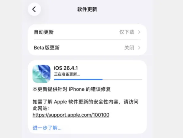 毫无征兆的发布 iOS 26.4.1 正式版系统,主要修复漏洞。