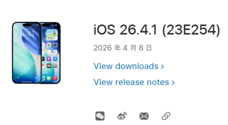 iOS 26.4.1 正式版紧急推送!果粉狂喜,这些 bug 终于全修复啦苹果又双叒叕发新系统啦!4 月 9 日凌晨,iOS 26.4.1 正式版(内部版本号 23E254)火速上线!距离 iOS 26.4 发布才过去短短 15 天,妥妥的 “救火式” 更新,专门解决上一版的各种糟心问题,果粉们终于可以松口气啦~😮💨📶 网络问题大清扫!WiFi 蓝牙稳如狗iOS 26.4 的 WiFi 断流真的逼疯不少人!锁屏断网、切 App 图标消失、反复重连,刷剧打游戏全程心态崩了😤。这次 26.4.1 直接底层优化,2.4G/5G 频段都超稳定,锁屏、连蓝牙、切应用都不会掉线,网络延迟彻底拜拜~蓝牙也同步升级!AirPods 听歌没杂音、不断连,车载蓝牙和 CarPlay 连接超顺畅,导航通话全程清晰,无线党狂喜!🎉🔋 发热耗电退退退!老机型续航回春谁懂 iOS 26.4 的发热焦虑啊!轻度使用都发烫,老机型一天两充都不够,待机耗电快到离谱。更新后功耗算法大修正,后台无效进程全减少,机身温度直线下降,刷视频玩游戏都不烫手啦~实测 iPhone 12-15 系列夜间 8 小时待机耗电≤2%,中度使用续航延长 1-1.5 小时,直接回归 iOS 26.3.1 的巅峰水平,老机型又能 “续命” 啦!👏🛠️ 全能 bug 修复!细节体验拉满除了核心问题,这次更新还把一堆小毛病一次性解决:iCloud 同步漏洞彻底修复,跨设备数据同步终于正常,共享密码、文档同步不翻车相机启动加速,弱光下面容 ID 解锁成功率飙升微信、抖音等常用 App 闪退、杀后台问题全解决修补多项内核、网络高危安全漏洞,隐私安全拉满💯🔬 隐藏彩蛋!医疗级功能悄悄上线开发者还挖到惊喜!iOS 26.4.1 悄悄为 HealthKit 新增 DICOM 医学影像支持,以后 iPhone 能直接读取 CT、MRI 等专业医疗影像,搭配 Studio Display XDR 还能实现医疗级显示,虽然日常用不上,但未来健康管理超实用,苹果这波布局太超前啦~🌟✅ 升级建议:必更!必更!iOS 26.4.1 纯修复无新功能,稳定性拉满!已更 26.4 的小伙伴立刻升级,没更的也可以放心冲,所有 iPhone 机型都适配。升级前记得电量≥50% 或插充电器,避免中途中断哦~这次更新真的诚意满满,把 iOS 26.4 的坑全填上,iPhone 用起来又丝滑如初啦!还没更新的果粉快冲,体验直线上升~🚀#iOS26.4.1#苹果系统更新#iPhone使用技巧#数码科技#iOS更新攻略