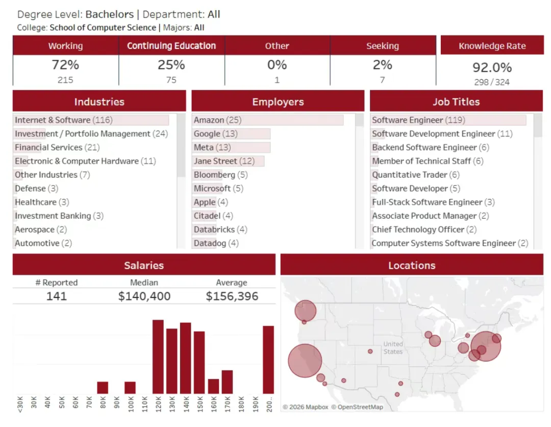 根据CMU官网公布的数据,2025届本科毕业生的整体表现堪称出色。在毕业去向方面,学生们展现出了理性且务实的态度,连续两年保持稳定态势: