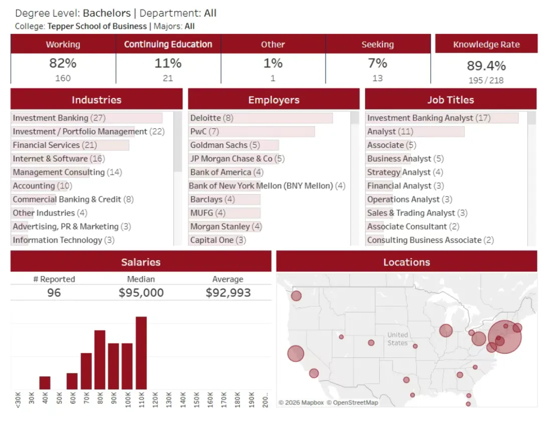 如果说CS学院以薪资取胜,那么泰珀商学院则以就业率见长。