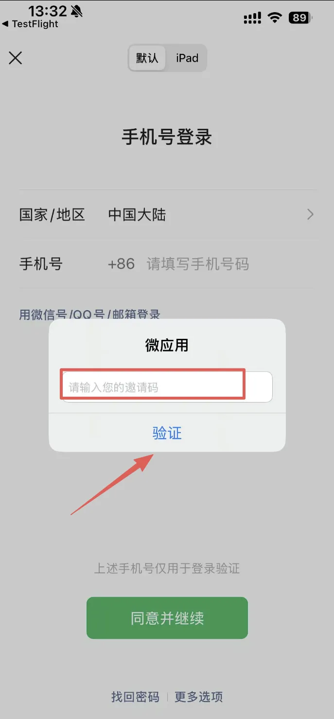 4. 安装好了,返回桌面打开新安装的微信,输入从我这里获取的邀请码粘贴输入,即可登录账号使用。