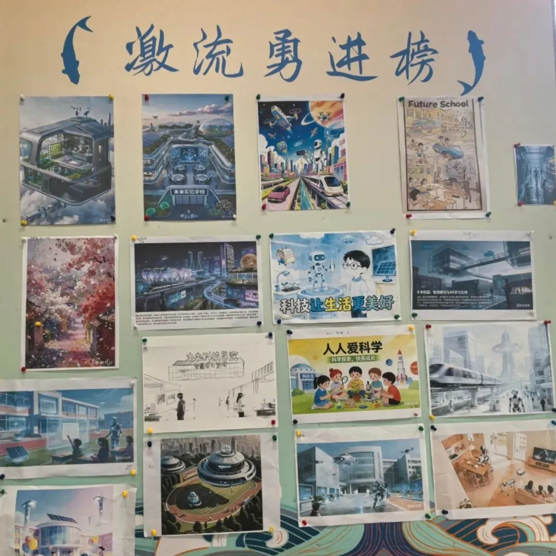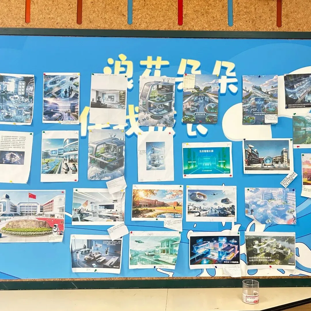 所有优秀作品都登上了班级展板,一笔一划、一帧一设计,都是孩子们对科学的美好畅想。