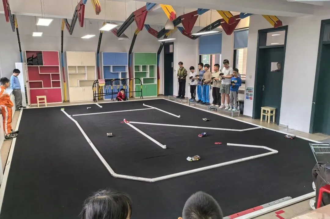 遥控车模赛上,小选手们精准操控赛车,极速冲刺、灵活转弯,每一个动作都尽显专注,速度与技巧的比拼,点燃全场激情。