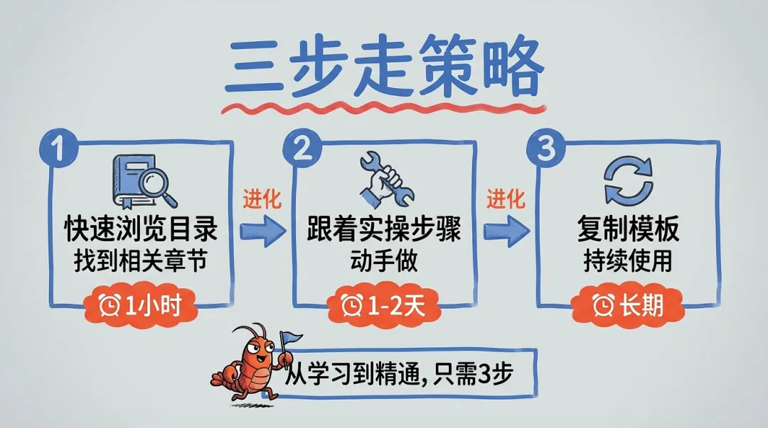 具体什么命令,在哪里配置,还有各行各业每个章节都有详细的避坑要点,大家可以试试种草清华社《养只龙虾当副手:OpenClaw 从入门到实践操作手册》,我建议大家不必按部就班从头读到尾,这不是一本需要钻研的学术著作,而是一本工具指南。
