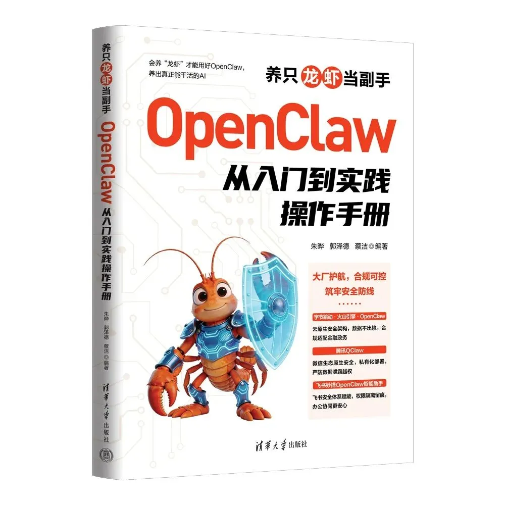 今日推荐图书《 养只龙虾当副手:OpenClaw 从入门到实践操作手册 》。在人工智能(AI)技术深度赋能各行业的今天,本书为读者提供了一本从基础部署到企业级落地的全闭环 AI 智能体应用指南。本书以全流程自动化 AI 工具 OpenClaw 为核心,通过 “认知重塑 + 通用方法 + 分岗实战 + 进阶升级” 的结构化教学,帮助读者从 AI 工具使用者蜕变为能打造专属智能体体系的高手。本书以 “养虾五步法” 贯穿全岗位、全行业的高频场景,如办公自动化场景的会议纪要自动生成行动方案、工单智能派单;新媒体内容岗位的内容批量创作、矩阵账号的高效运营;私域与销售岗位的客户分层触达、话术智能生成;管理岗位的经营简报自动推送、数据异常实时告警;外贸行业的多语言沟通、商品批量上架;教育行业的个性化教案生成、作业自动批改…… 全方位用 AI 替代重复劳动,帮助读者在 AI 协作下解放双手,打造企业核心竞争力。本书适合想快速实现办公自动化的职场人、寻求降本提效的企业管理者、渴望突破业务瓶颈的创业者,以及关注 AI 智能化转型的技术从业者学习阅读。