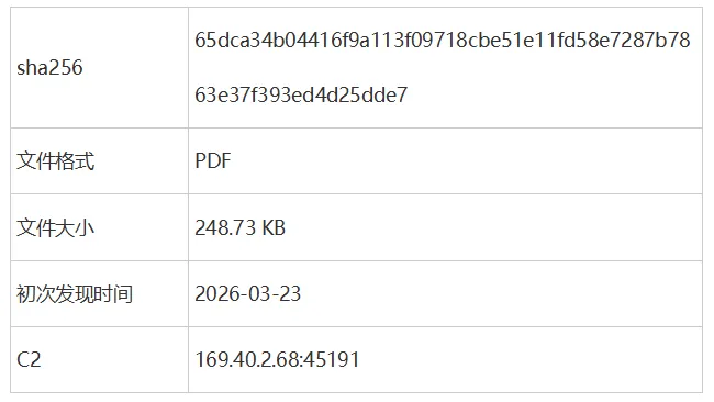 监控并阻止IP为188.214.34.20和169.40.2.68的出站流量;在EDR上排查对应IP的网络访问动作。在桌管/软管上筛选软件厂商包含Adobe,软件名称包含Reader,可以快速查询并管控不同版本的AdobeReader。● 务必格外小心:不要打开未经核实来源的PDF文件,如有必要可暂停使用AdobeReader,改用浏览器或者其他软件打开。● 阻止恶意基础设施:网络管理员应监控并阻止188.214.34.20 在34123端口和 169.40.2.68在端口45191上通信的出站流量。● 部署高水平EDR:持续监控Adobe Reader被攻击后的后续攻击行为个人用户:临时禁用Adobe 软件中的JavaScript(Edit > Preferences > JavaScript)。企业用户:统一管理AdobeJavascript,可通过注册表实现,详细的禁用JavaScript方法建议参考Adobe官方链接:https://www.adobe.com/devnet-docs/acrobatetk/tools/AppSec/javascript.htmlzx. ado-read-parser.com(解析至188.214.34.20)http://188.214.34.20:34123/rs1?rnd=<float>&od=422974http://188.214.34.20:34123/s11?language=ENU&viewerType=Reader&viewerVersion=...&platform=WIN&activeDocs=...&errs=...&av=...&osVersion=...&pdfFile=...&rnd=...&od=422974http://188.214.34.20:34123/s12?language=ENU&viewerType=Reader&viewerVersion=25.00120435&platform=WINhttp://188.214.34.20:34123/rs2http://zx.ado-read-parser.com/http://169.40.2.68:45191/rs1?rnd=<float>&od=319988http://169.40.2.68:45191/s11?language=ENU&...&od=31998854077a5b15638e354fa02318623775b7a1cc0e8c21e59bcbab333035369e377f65dca34b04416f9a113f09718cbe51e11fd58e7287b7863e37f393ed4d25dde7eacad3e01b8b0a44ac030c8c169664dbbdde90c153b550c7b4e0609573df796d69bf0bc46f51b33377c4f3d92caf876714f6bbbe99e7544487327920873f9820a2c2339691fc48fbd14fb307292dff3e21222712d9240810742d7df0c6d74dfbhttps://justhaifei1.blogspot.com/2026/04/expmon-detected-sophisticated-zero-day-adobe-reader.html如需针对本次事件进行应急