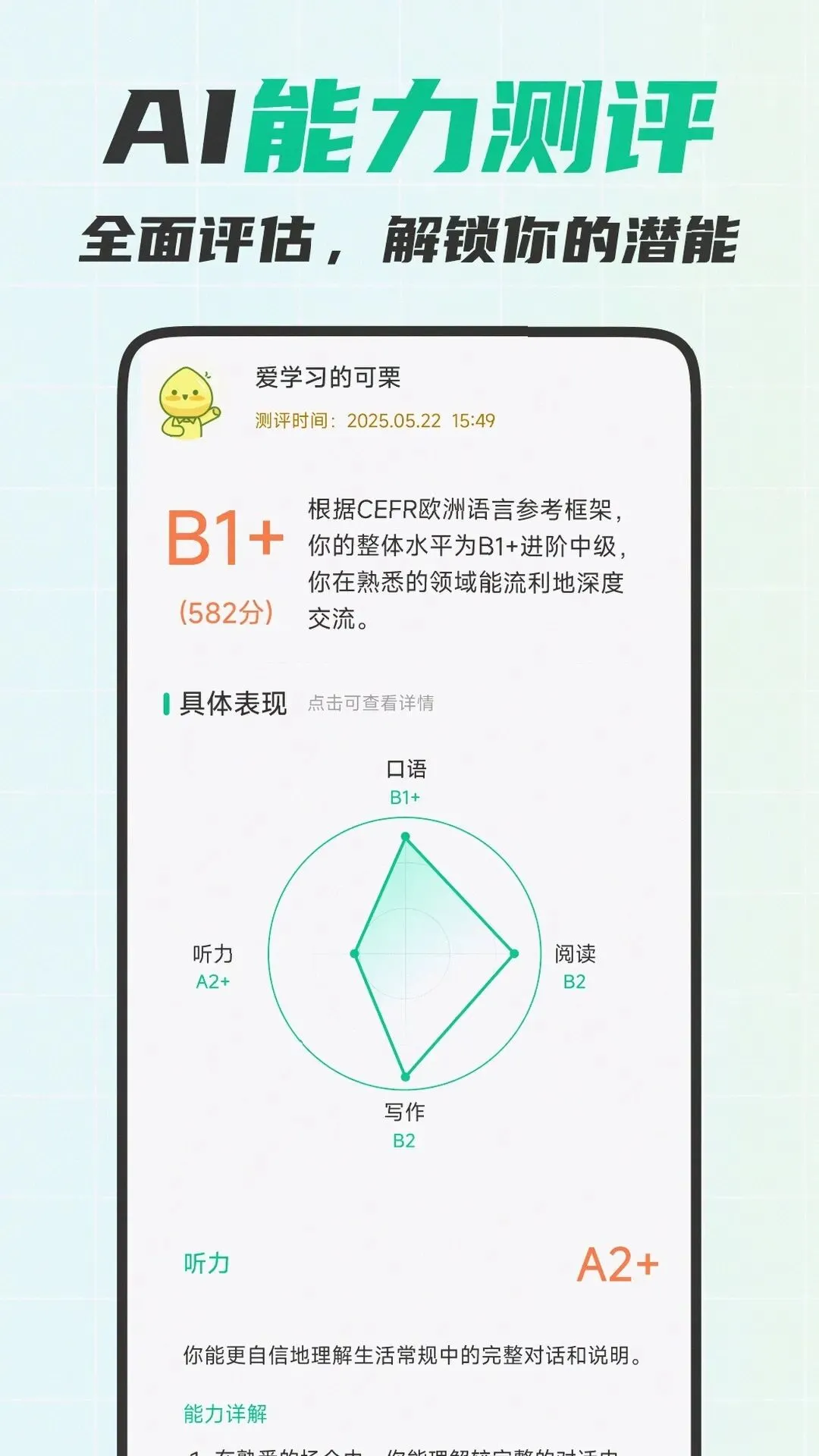 CEFR+中考双标准智能测评,进步看得见